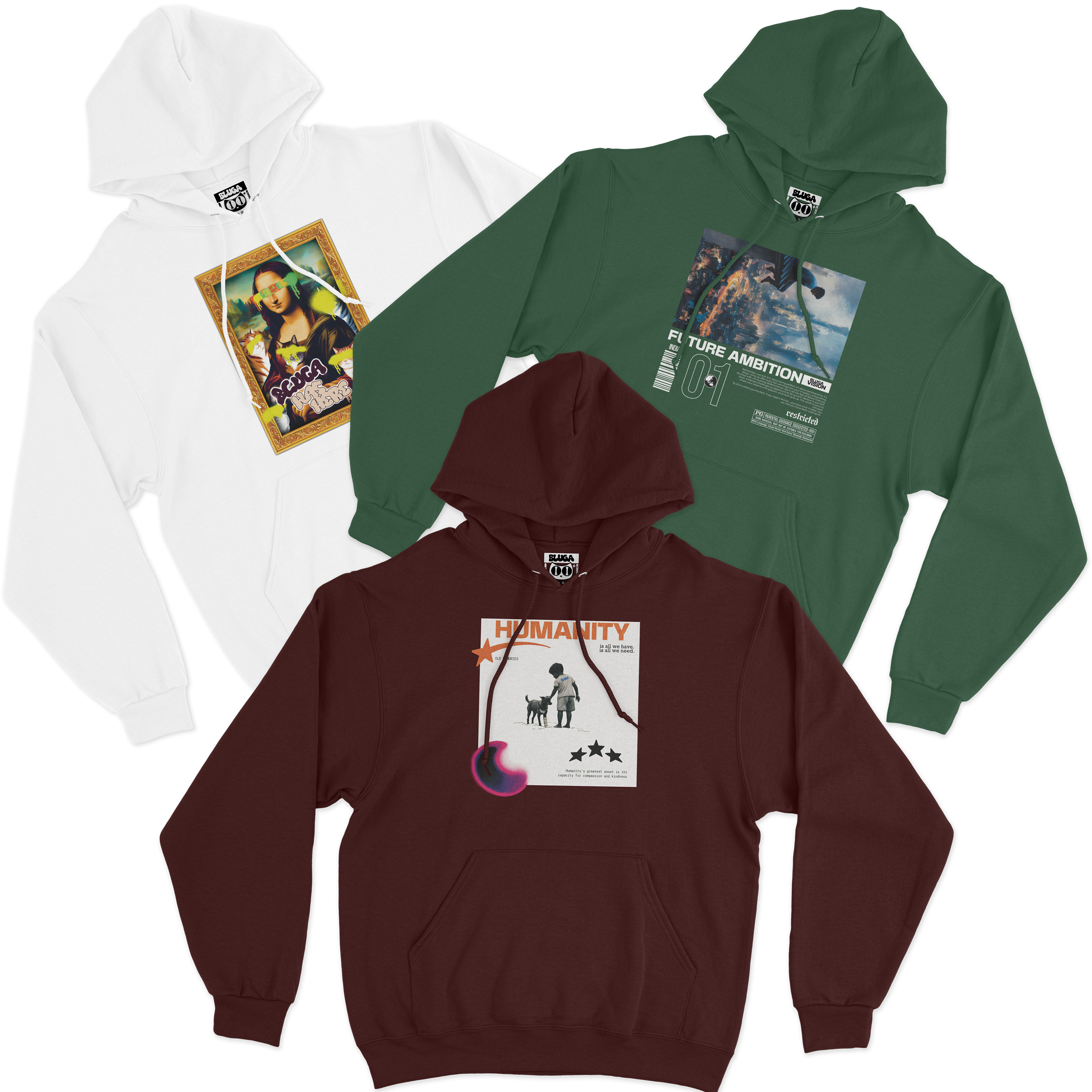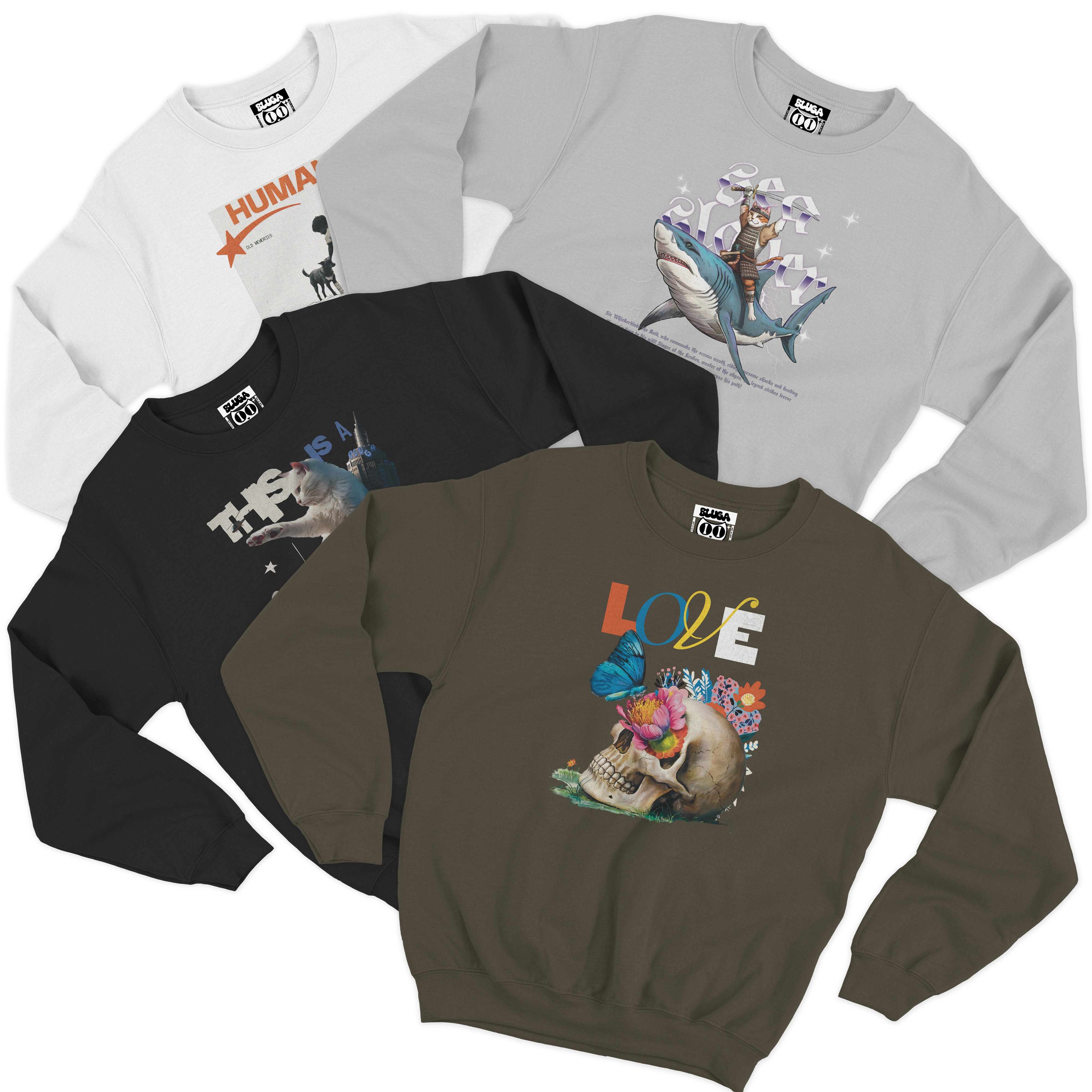 "Premium artistic sweatshirts. Double-stitched. 300 GSM brushed fleece cotton."